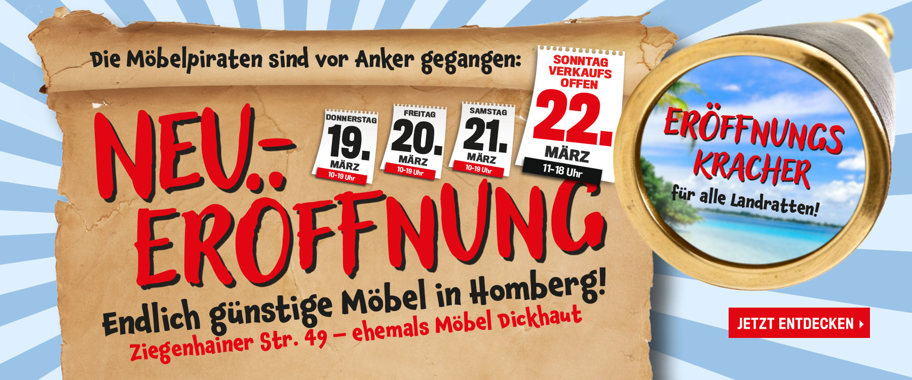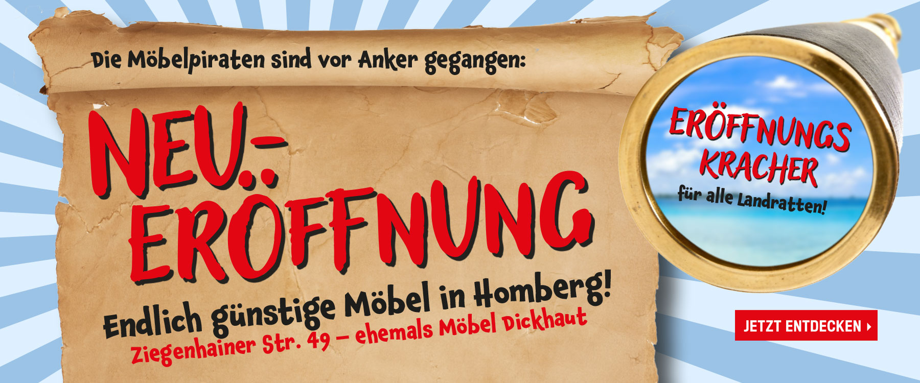 Zahlreiche Sonderposten und Schnäppchen-Artikel ergänzen immer wieder in riesigen Mengen das reguläre Sortiment. Bei uns den MÖBELPIRATEN profitieren die Kunden von optimalen Preisen durch zentralen Großeinkauf unter dem Motto: „GUTES DISCOUNT-GÜNSTIG“.