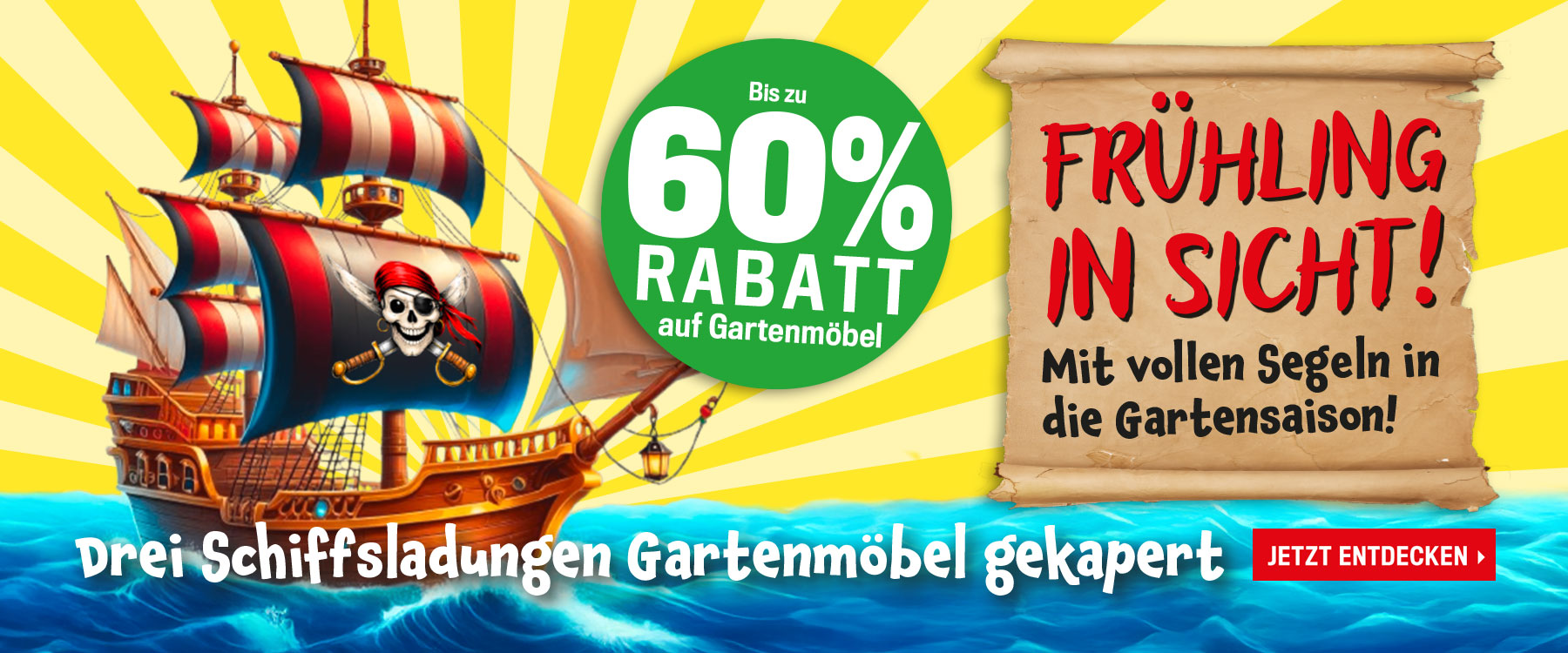 Wir die MÖBELPIRATEN bieten Ihnen eine vielseitige Auswahl, sodass wir für jeden das Passende dabei haben. Ob Polstergarnituren und Wohnwände für Ihren Wohnraum, komplette Schlafzimmerlösungen bis hin zum Boxspringbett fürs Schlafzimmer, Stühle und Esstische für Ihr Speisezimmer oder Schlafsofas für Ihre Gäste. Accessoires, Teppiche und Leuchten sind bei uns ebenfalls zu finden.